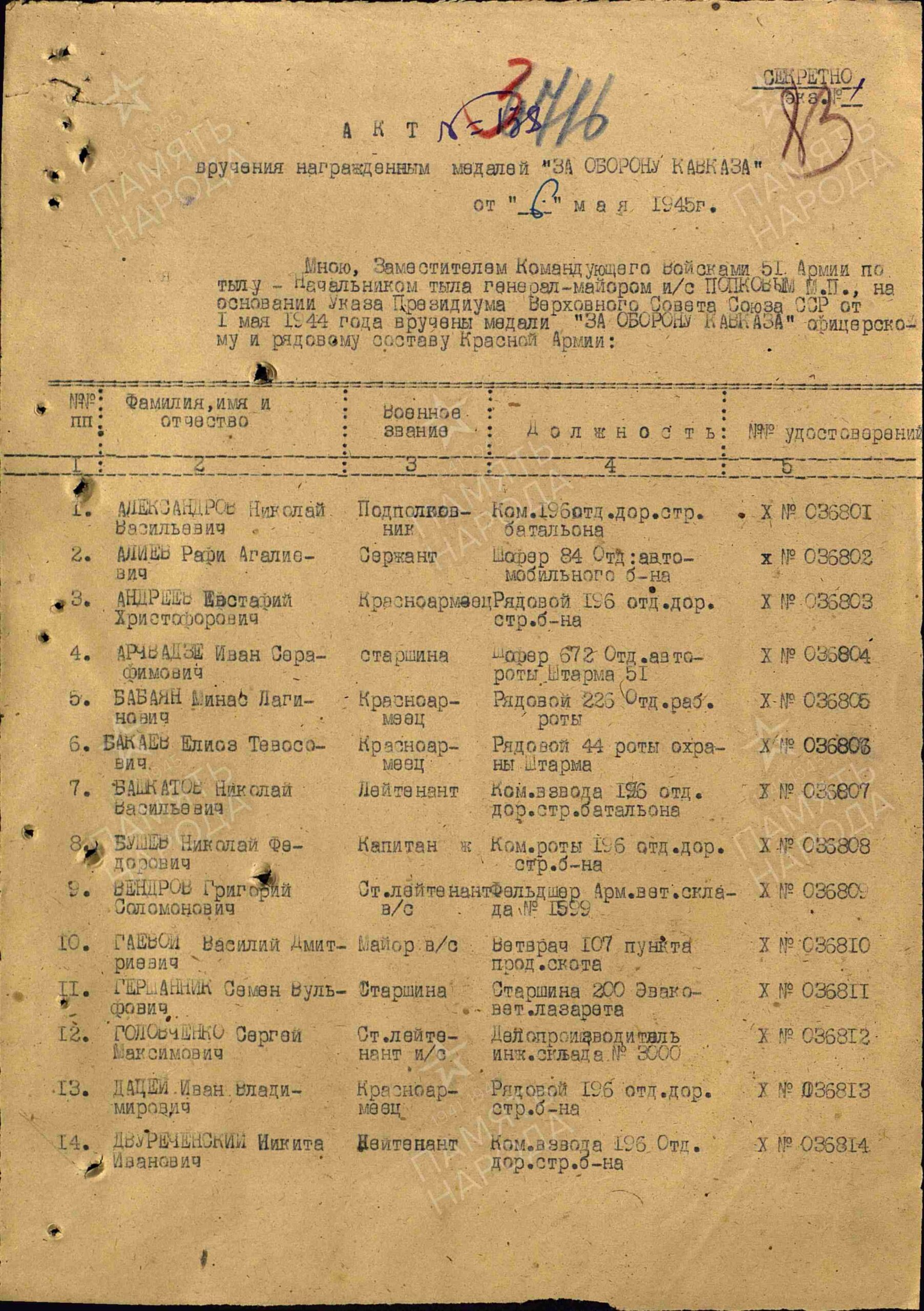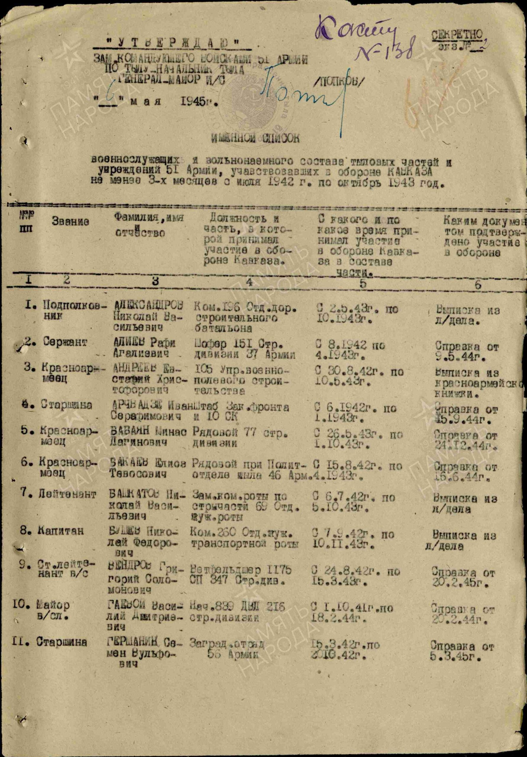 Последнее место службы: 115 ВСО