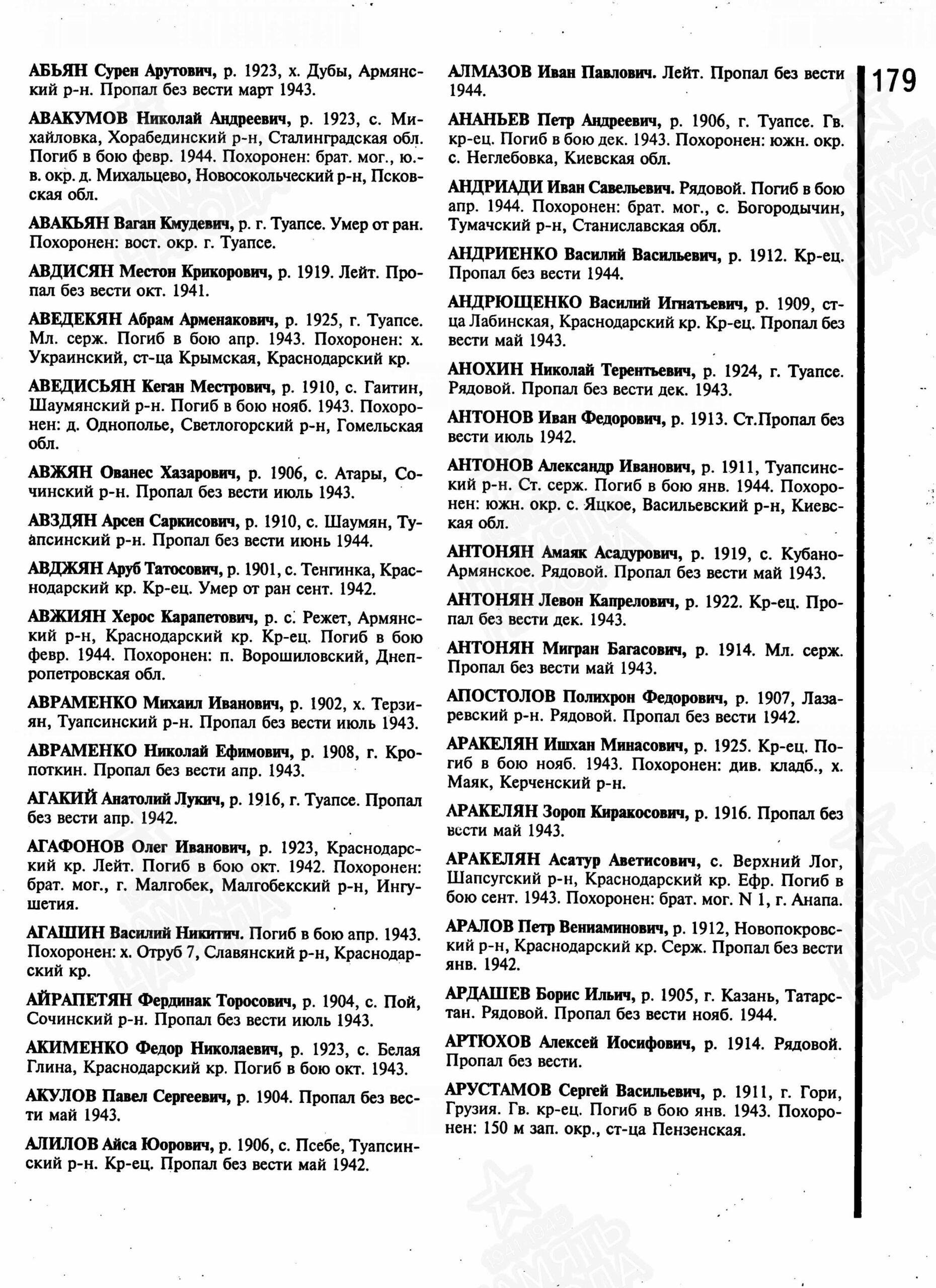Место рождения: Краснодарский край, Туапсинский р-н, г. Туапсе