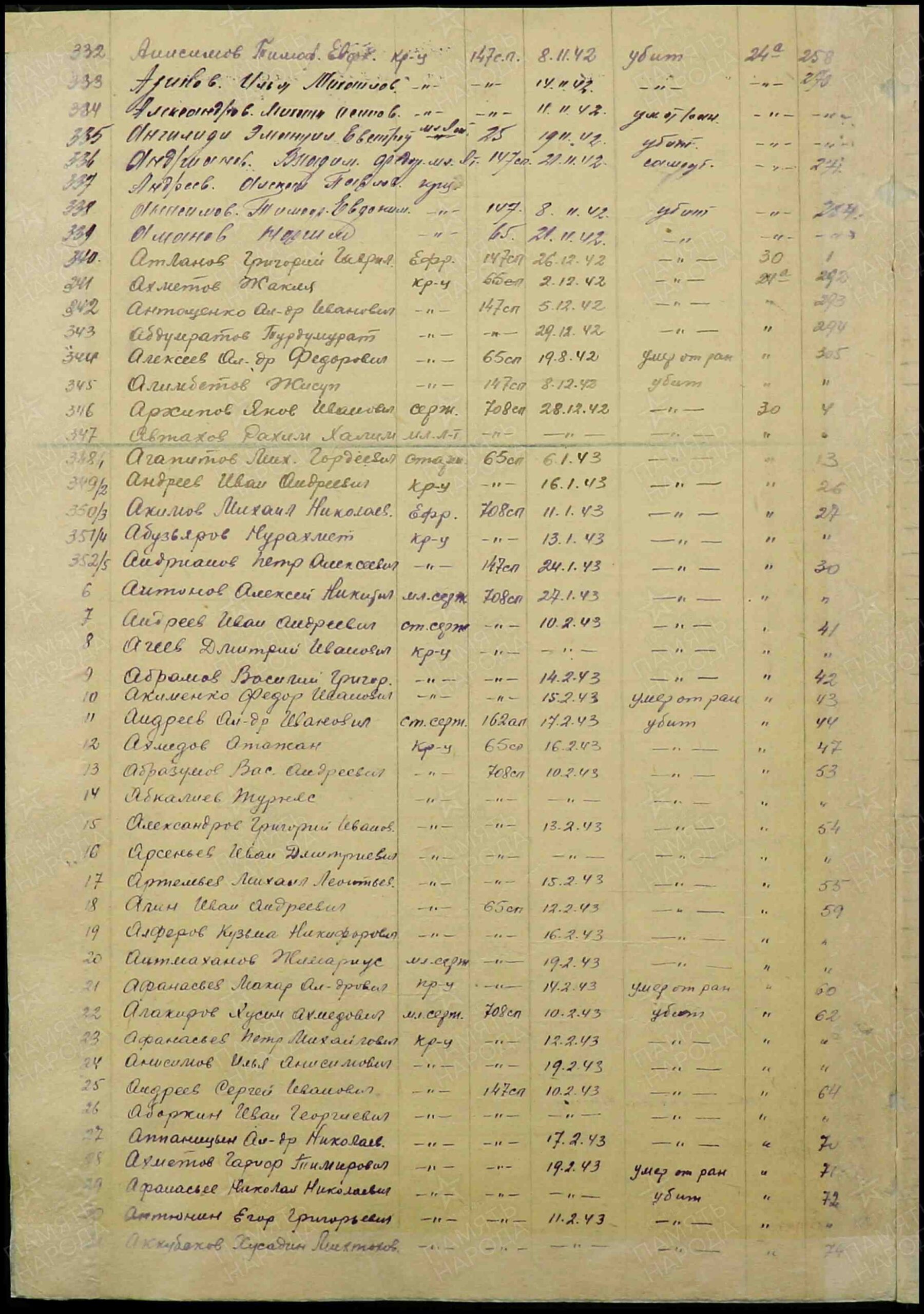 Причина выбытия: Погиб