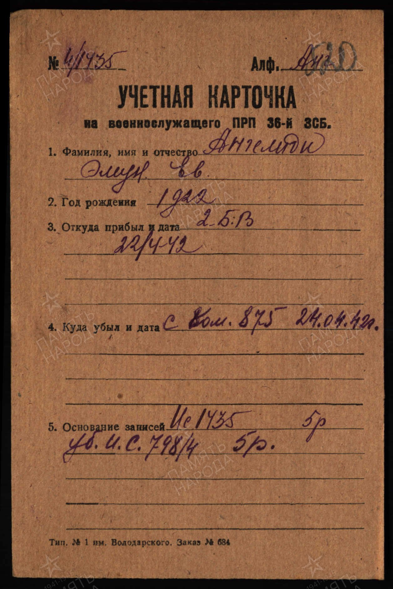 Дата выбытия: 19.11.1942