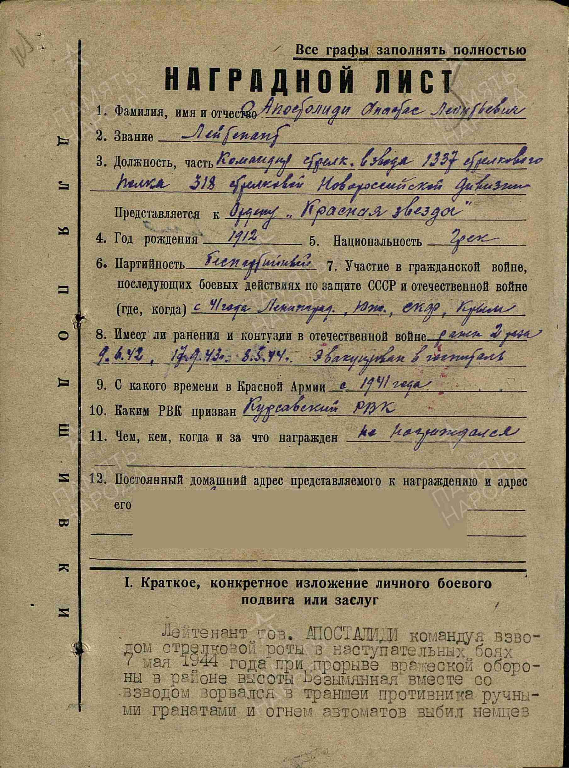 Добавьте информацию, после модерации она будет опубликована в анкете ветерана.