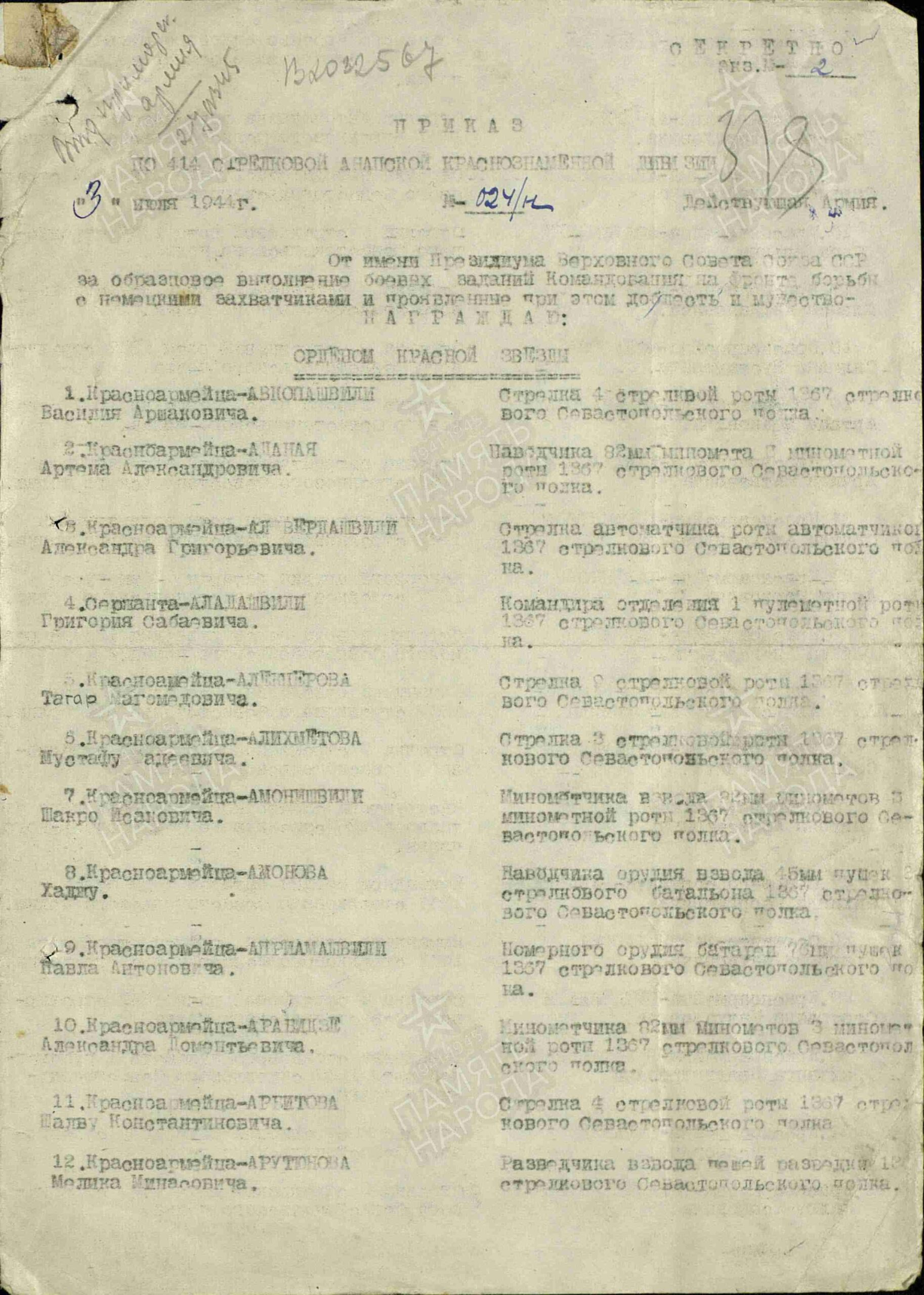 Воинское звание: Красноармеец