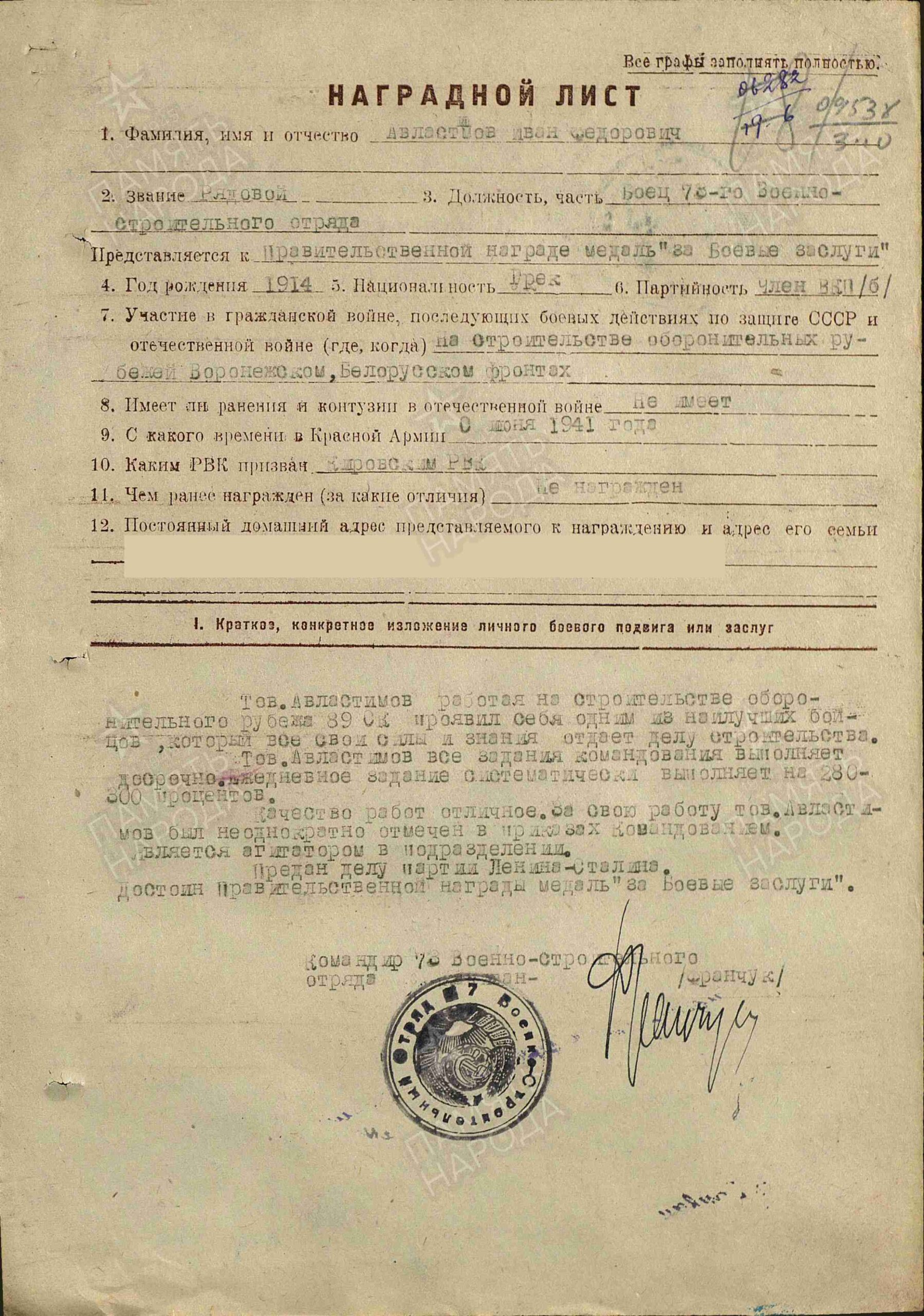 Добавьте информацию, после модерации она будет опубликована в анкете ветерана.