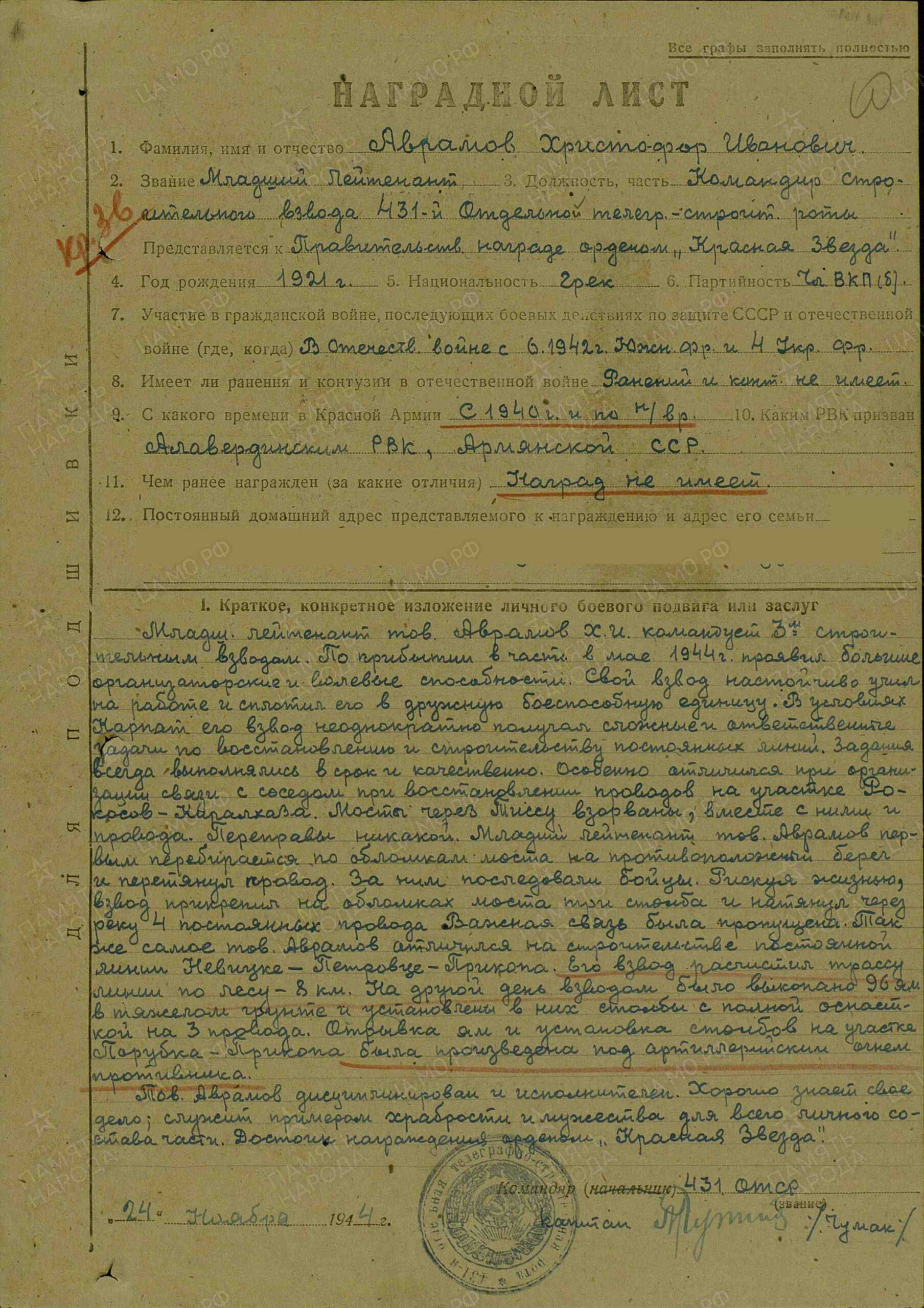 Добавьте информацию, после модерации она будет опубликована в анкете ветерана.