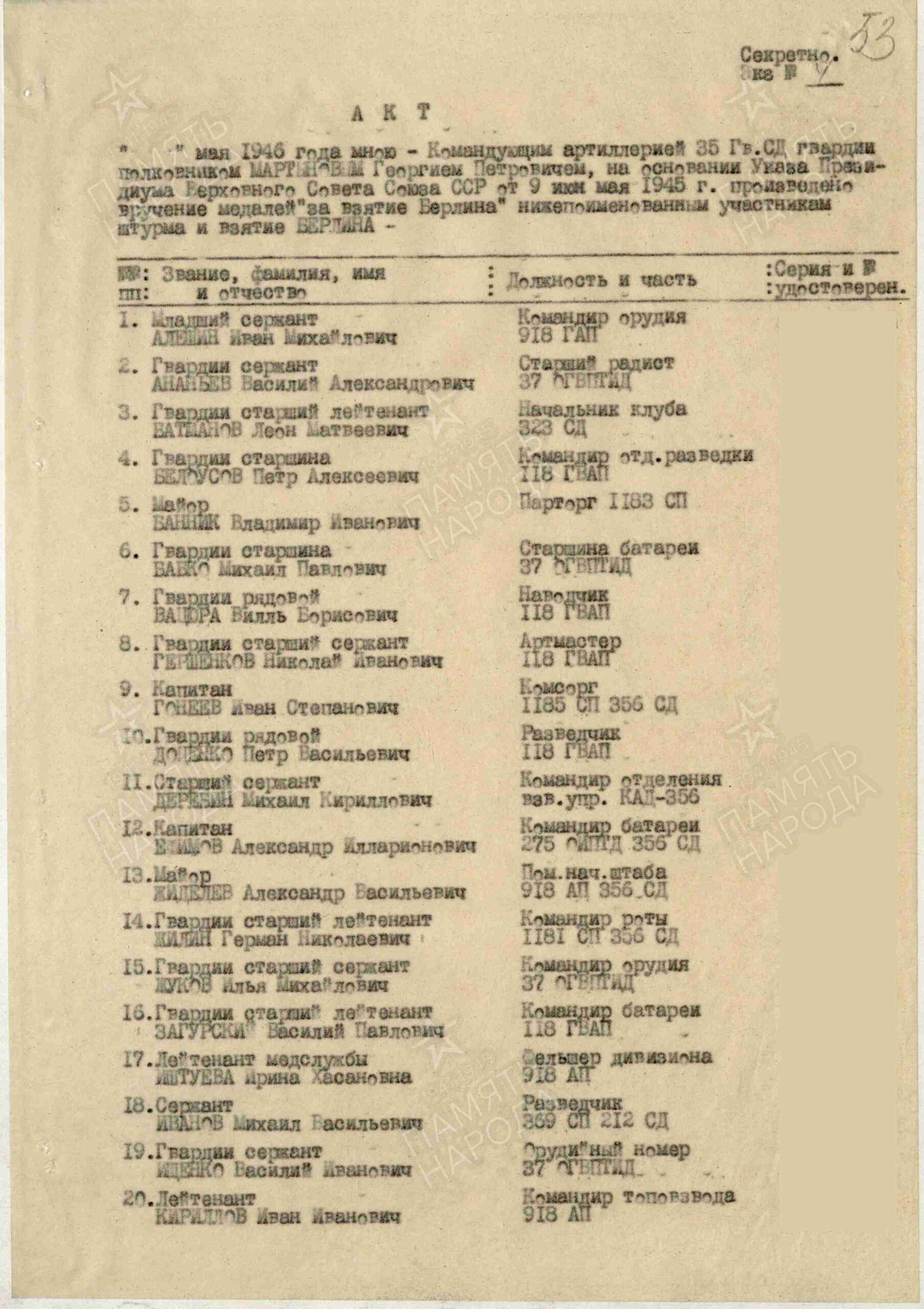 Добавьте информацию, после модерации она будет опубликована в анкете ветерана.