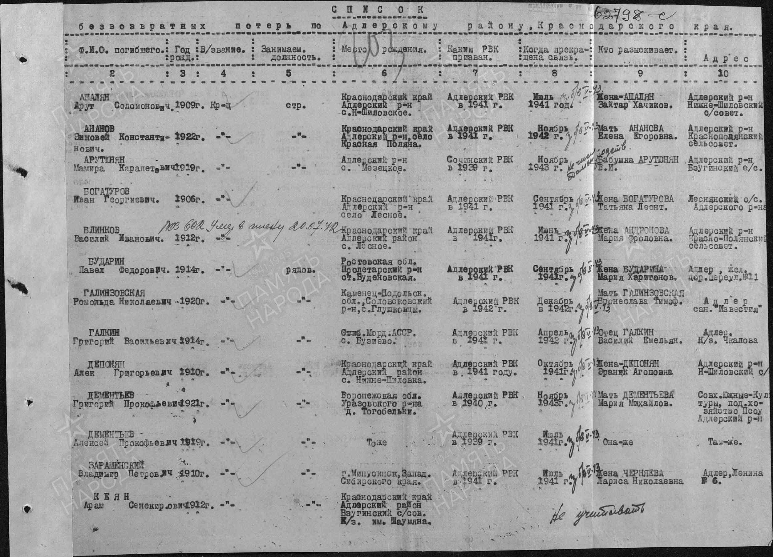 Наименование военкомата: Адлерский РВК, Краснодарский край, Адлерский р-н