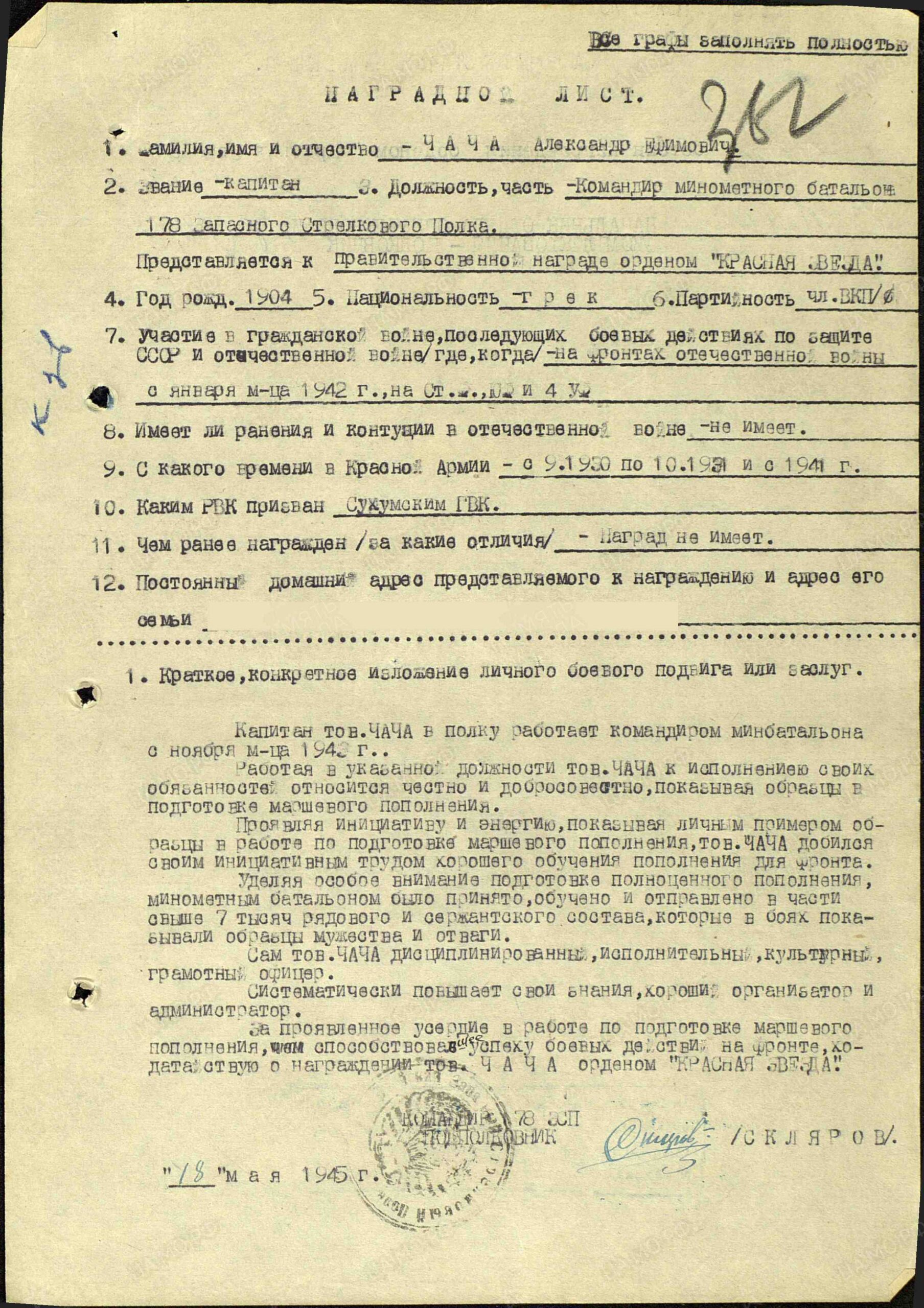 Добавьте информацию, после модерации она будет опубликована в анкете ветерана.