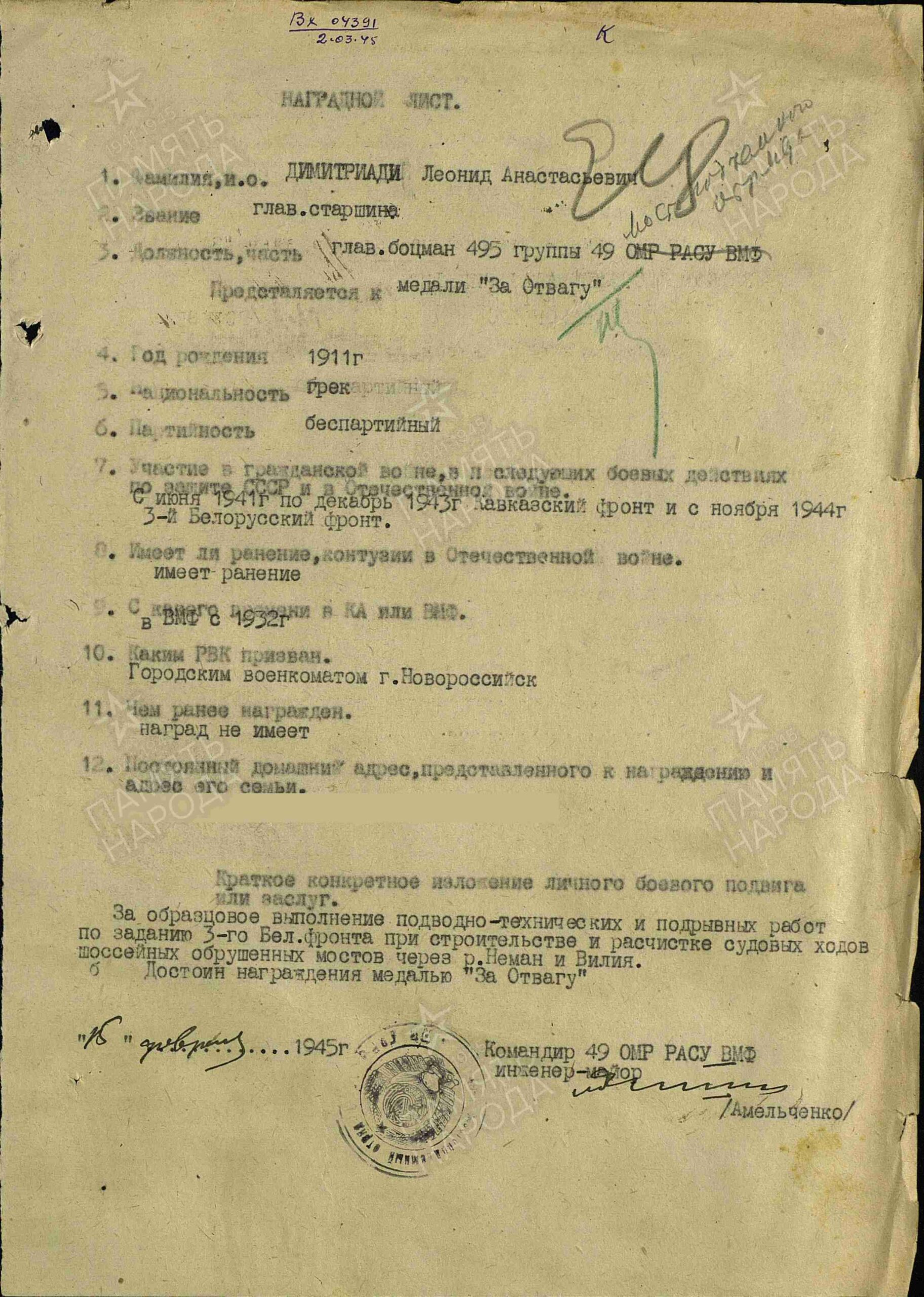 Упр. коменданта гарнизона г. Новороссийск ЧФ