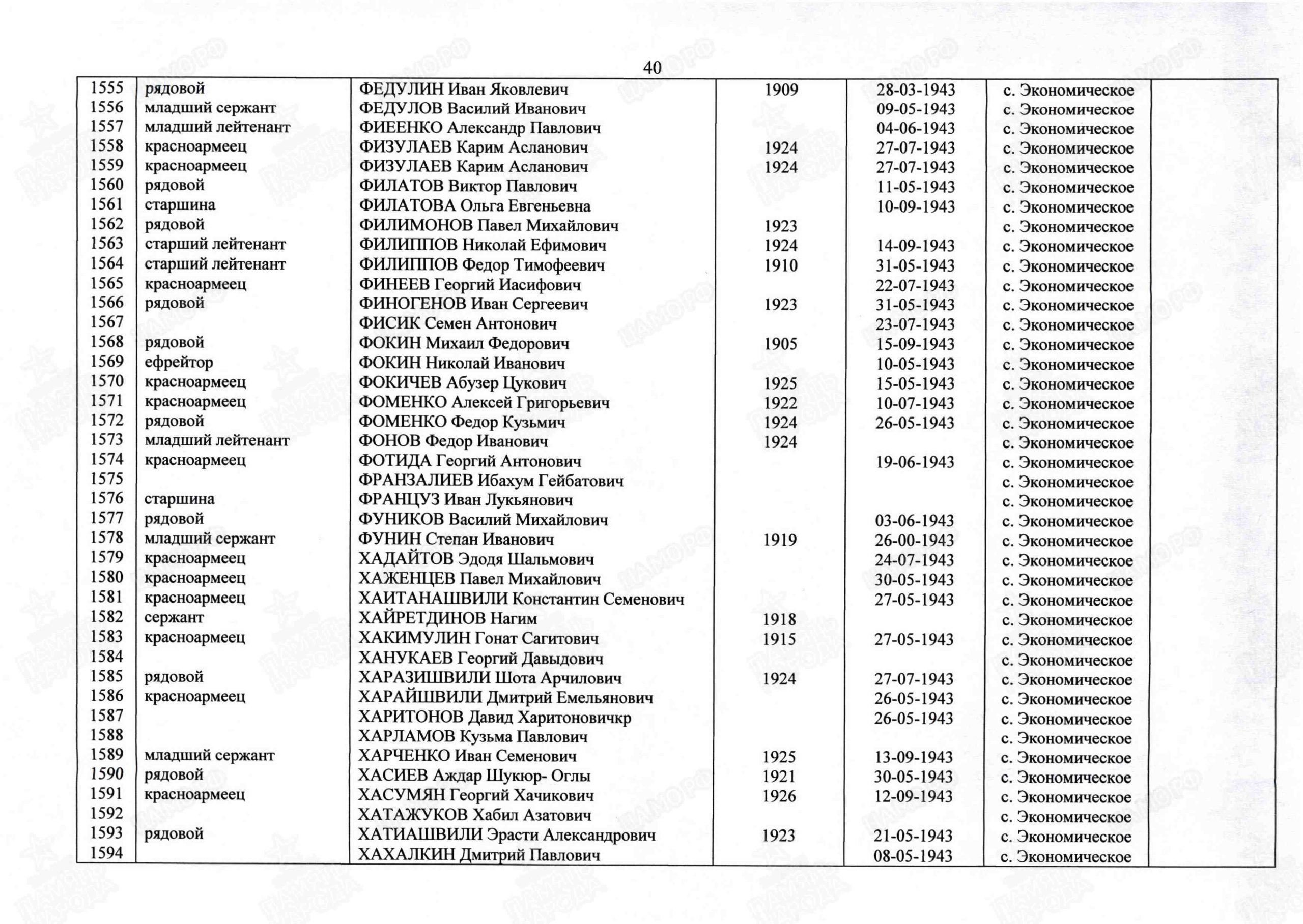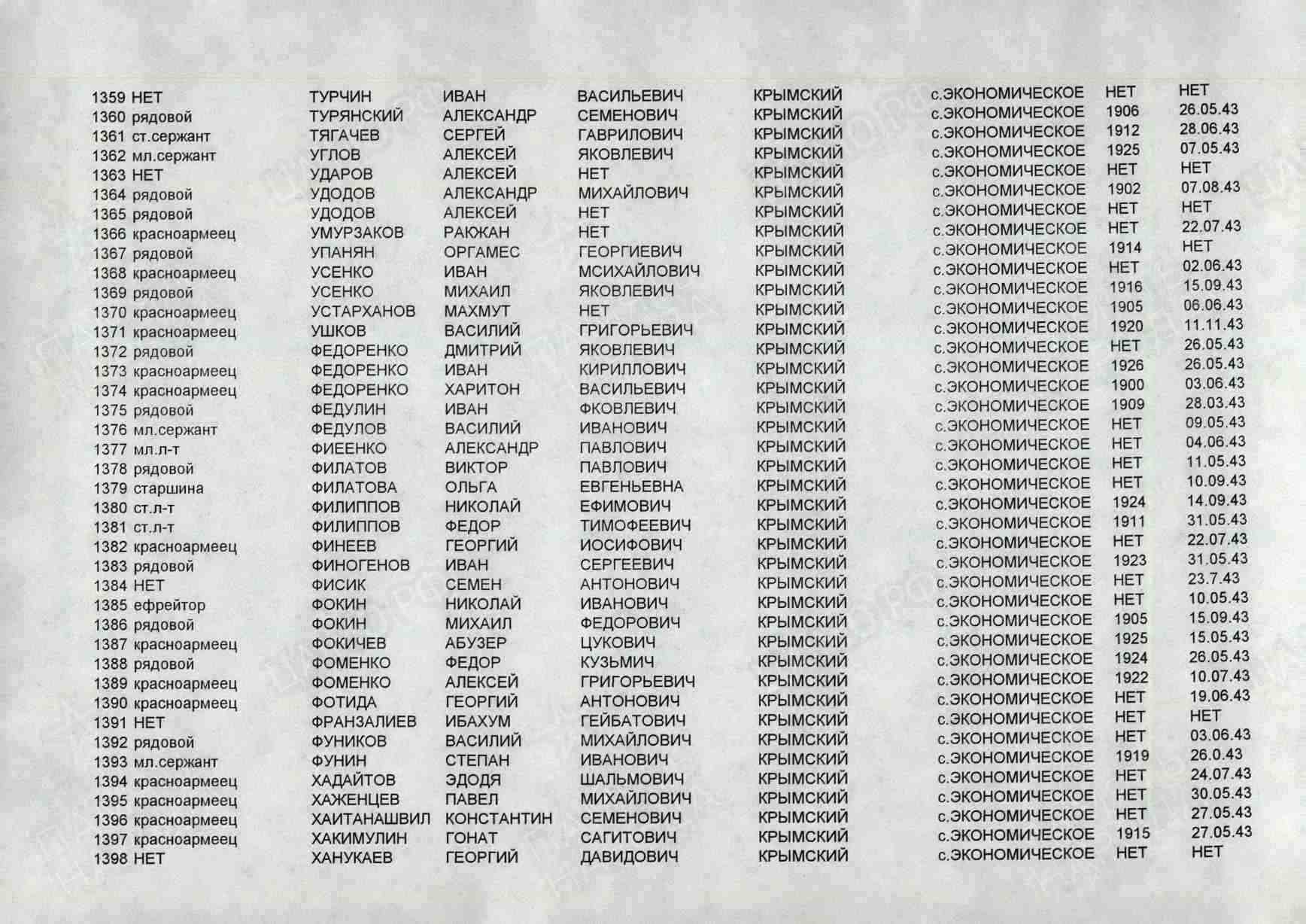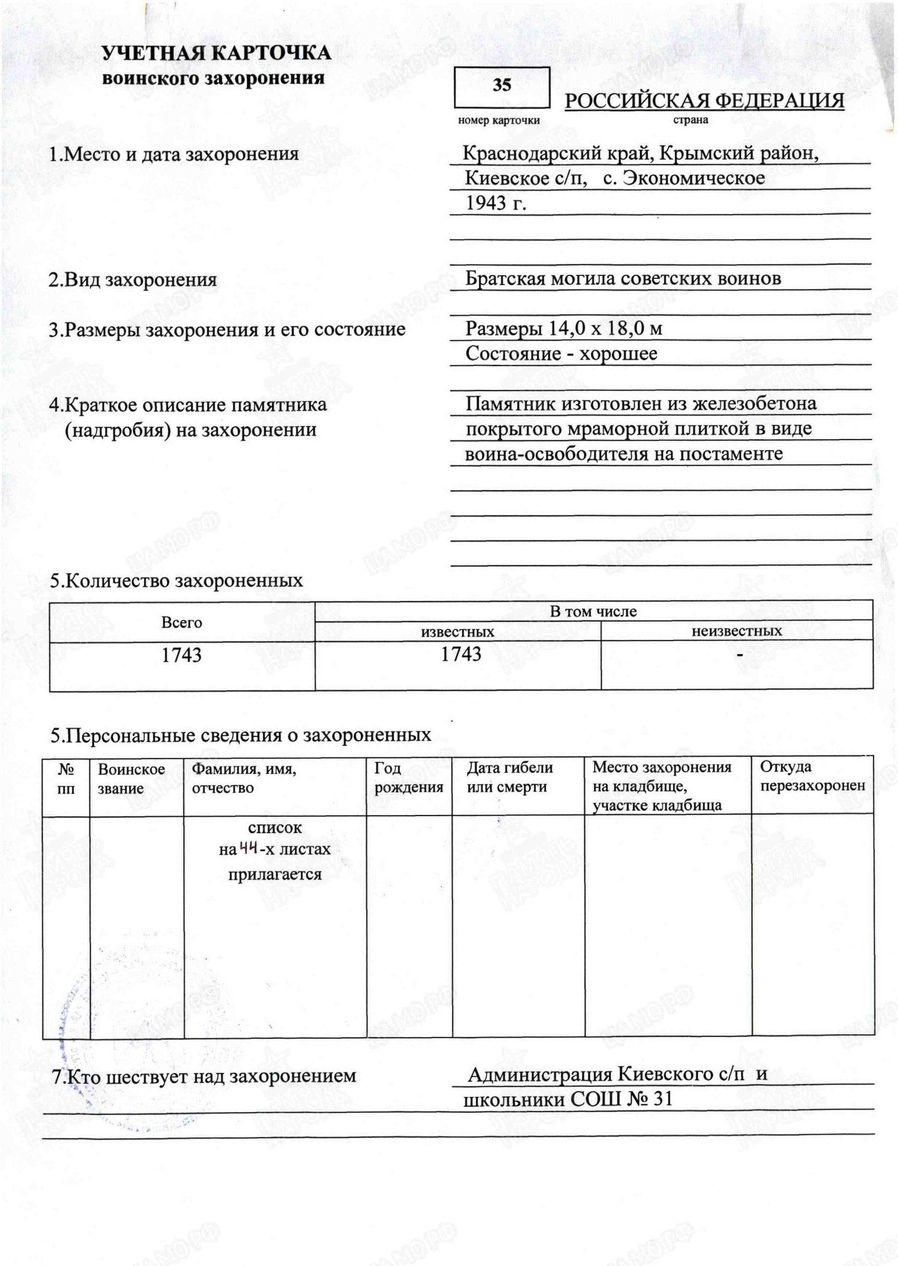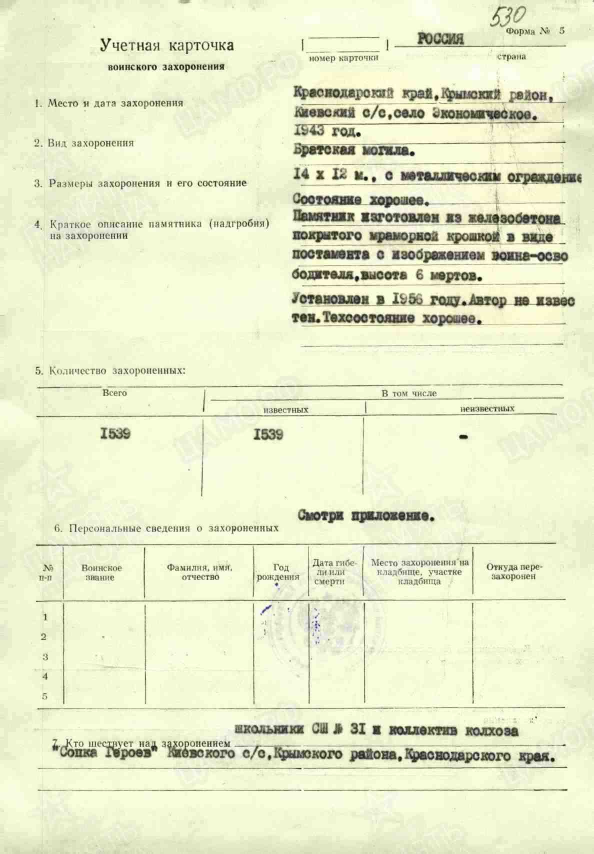 Первичное место захоронения: Крымский р-н, с.п. Киевское, с. Экономическое