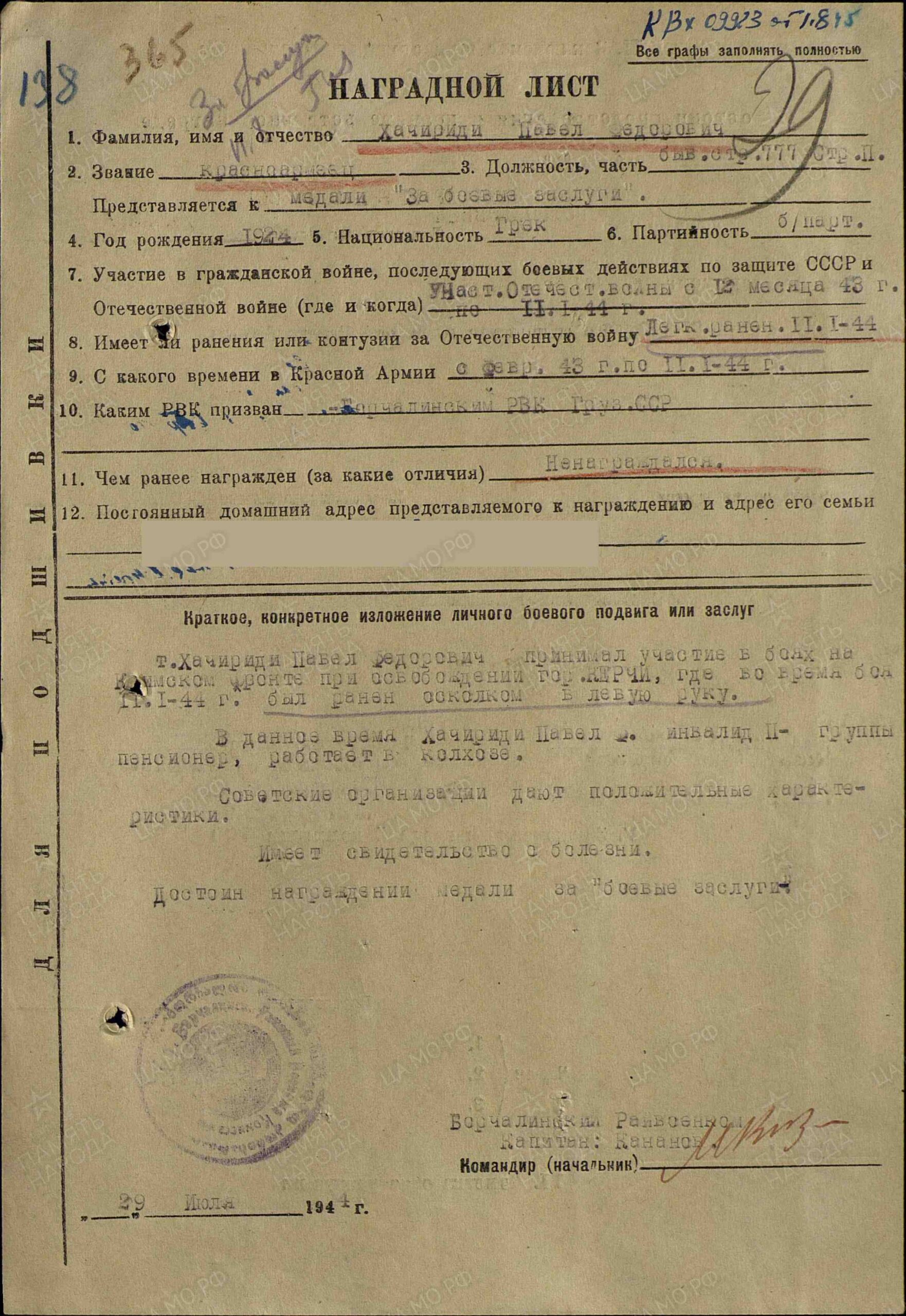 Место призыва: Борчалинский РВК, Грузинская ССР, Борчалинский р-н