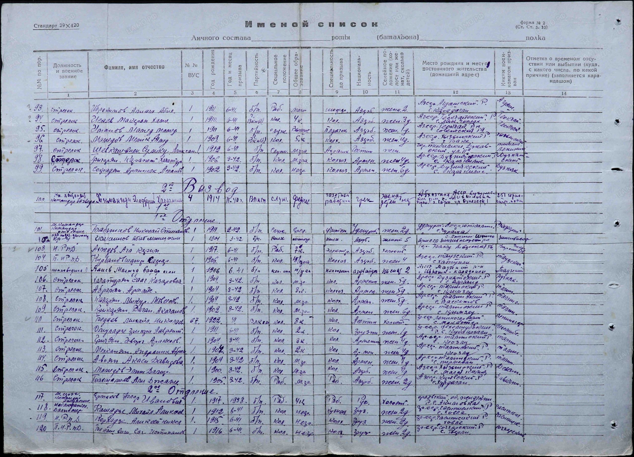 Наименование военкомата: Сухумский РВК, Грузинская ССР, Абхазская АССР, Сухумский р-н