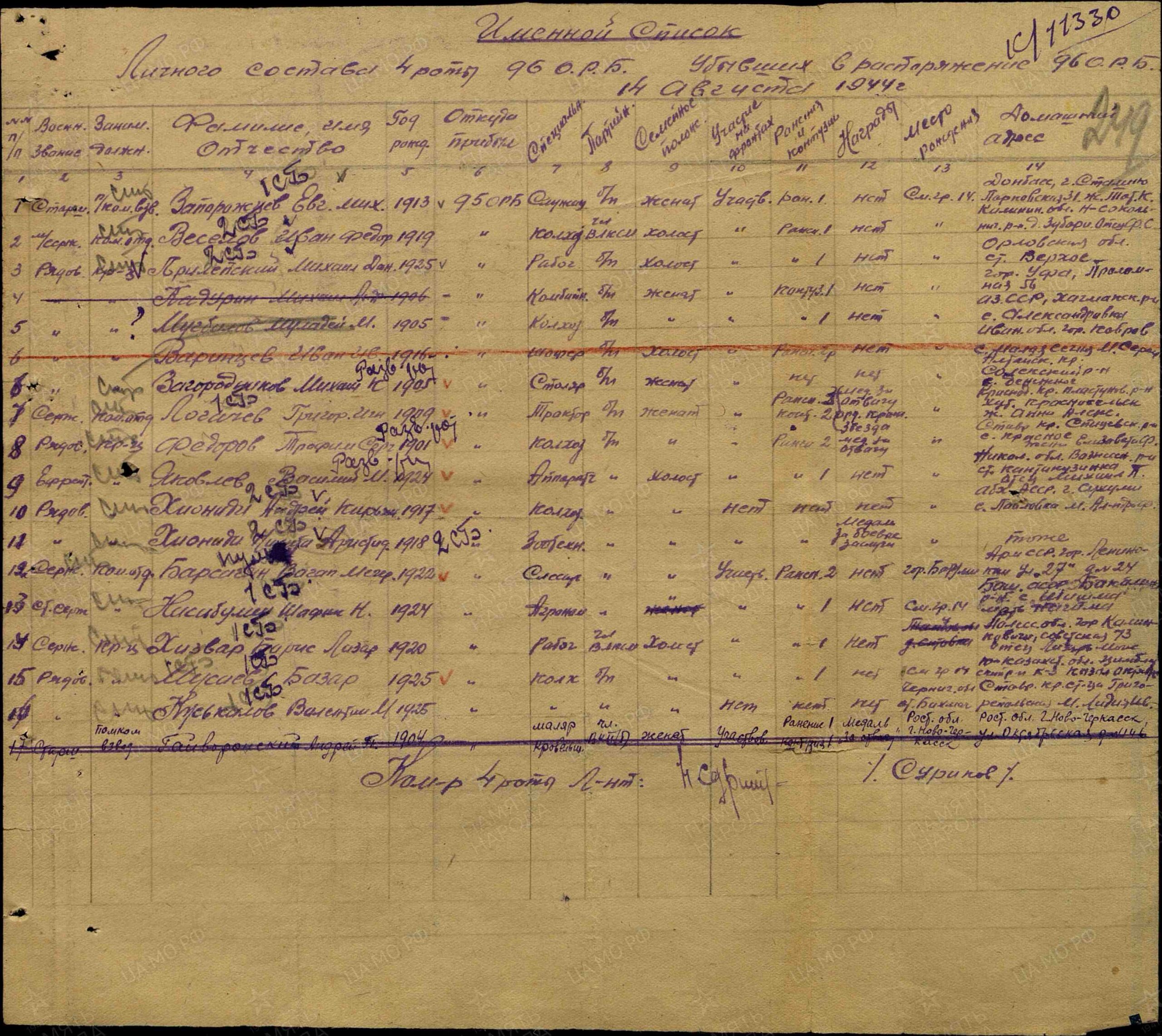 Последнее место службы: 96 орб