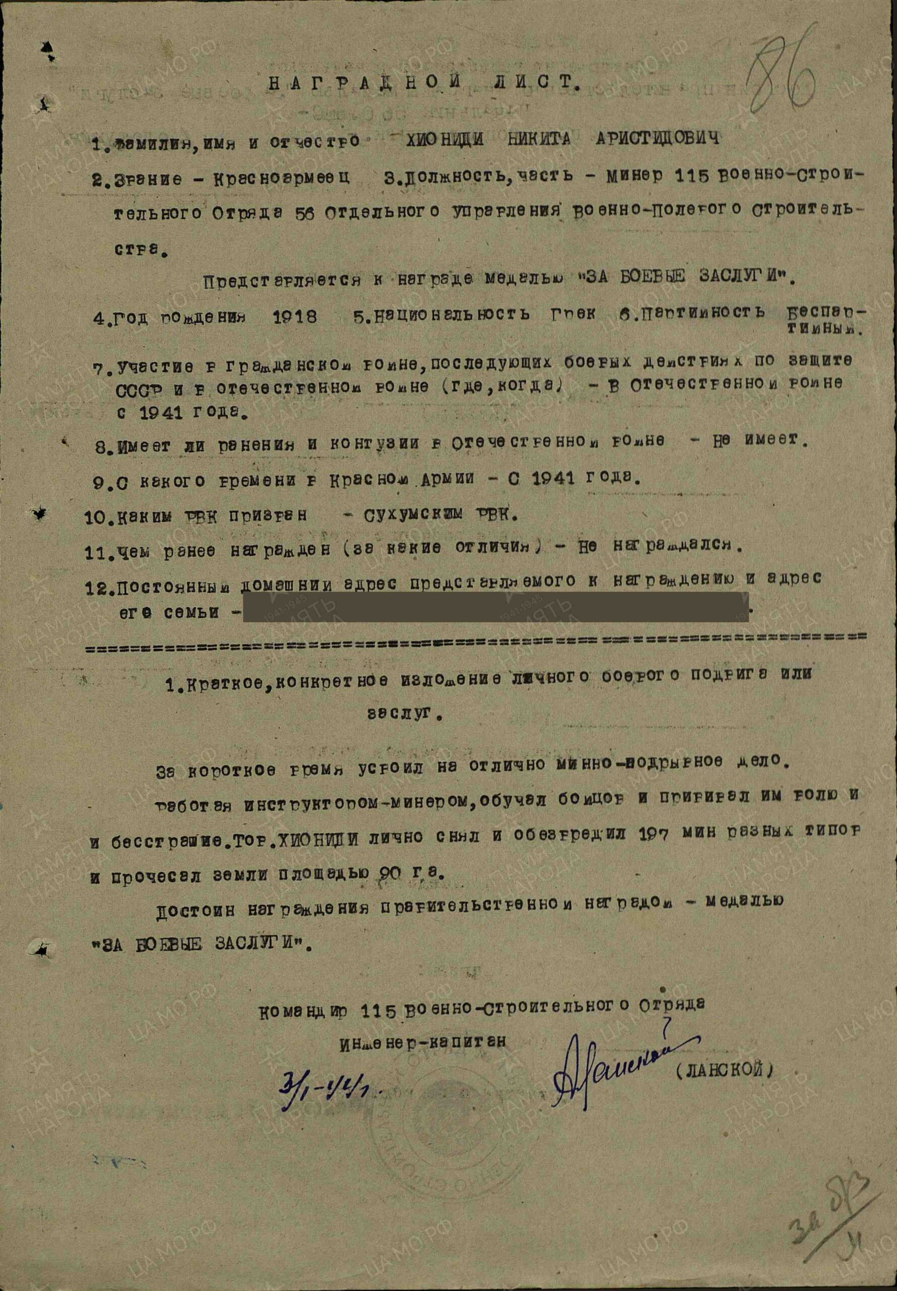 Место призыва: Сухумский РВК, Грузинская ССР, Абхазская АССР, Сухумский р-н