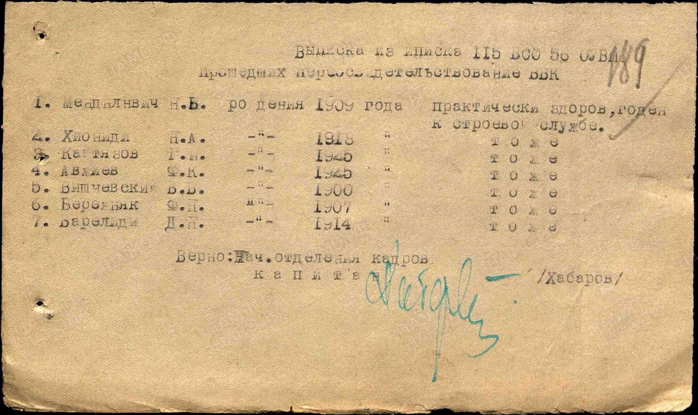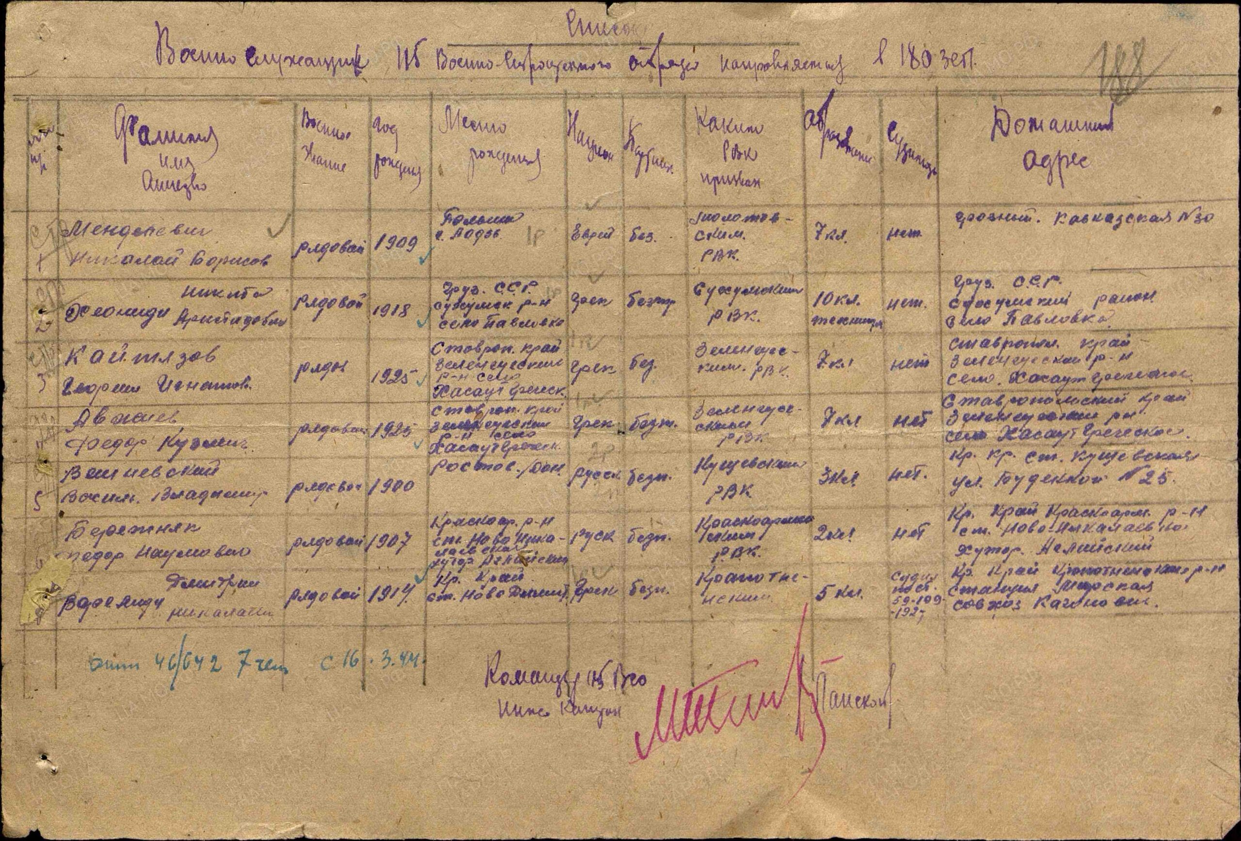 Наименование военкомата: Сухумский РВК, Грузинская ССР, Абхазская АССР, Сухумский р-н