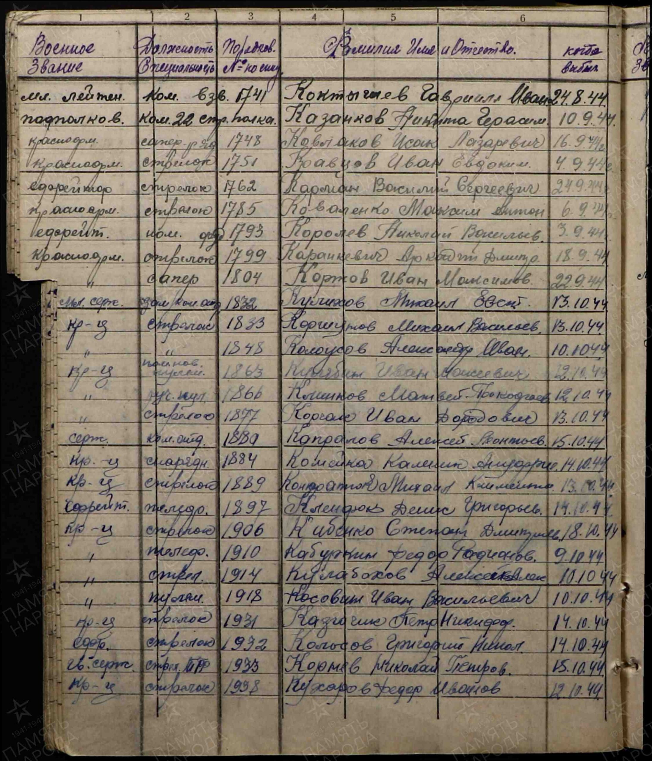 Дата выбытия: 16.09.1944