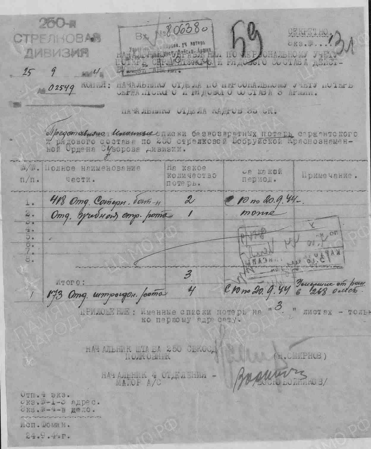 Воинская часть: 250 сд