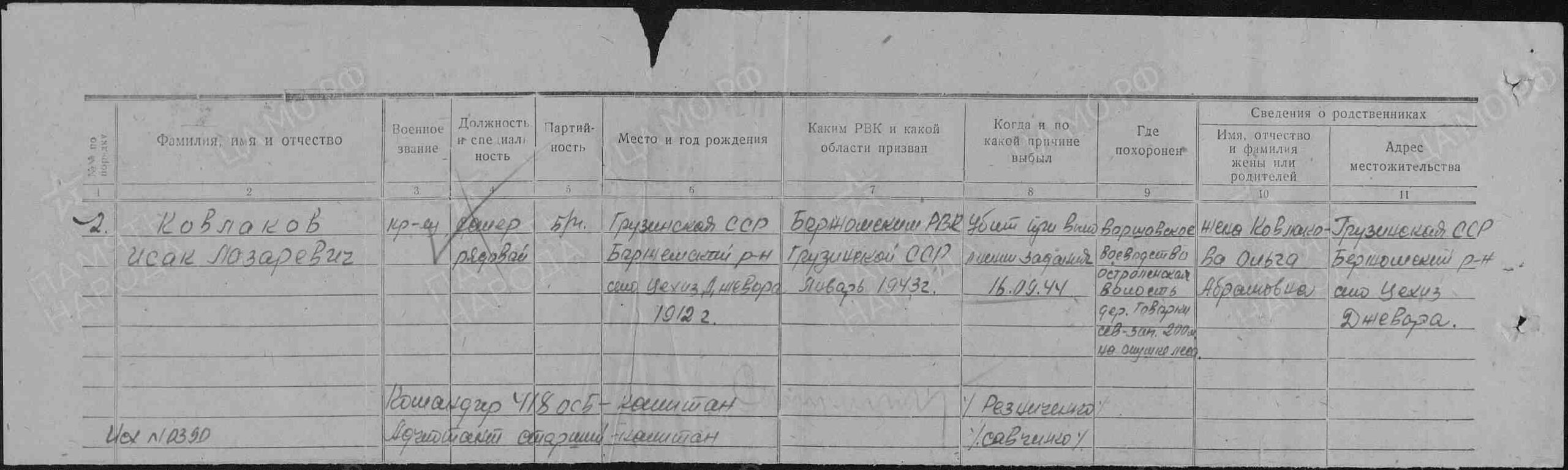 Наименование военкомата: Боржомский РВК, Грузинская ССР, Боржомский р-н