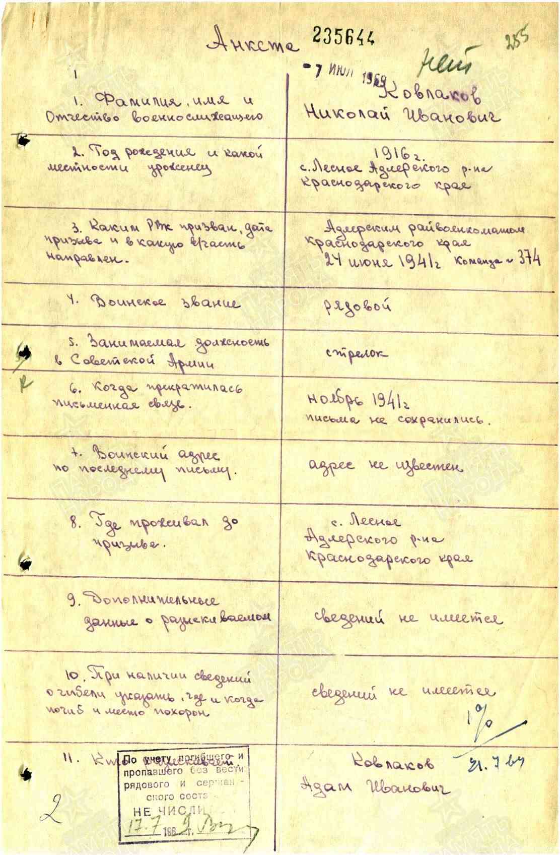 Дата и место призыва: Адлерский РВК, Краснодарский край, Адлерский р-н