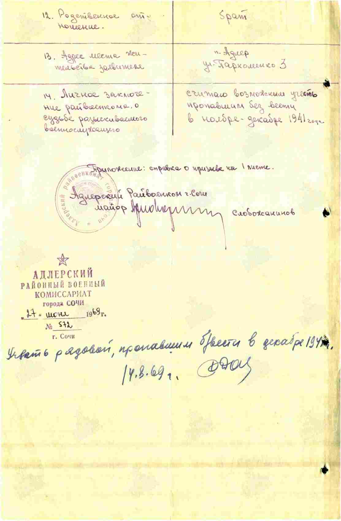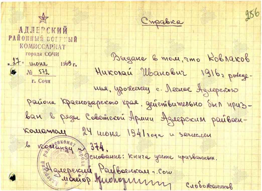 Наименование военкомата: Адлерский РВК, Краснодарский край, Адлерский р-н