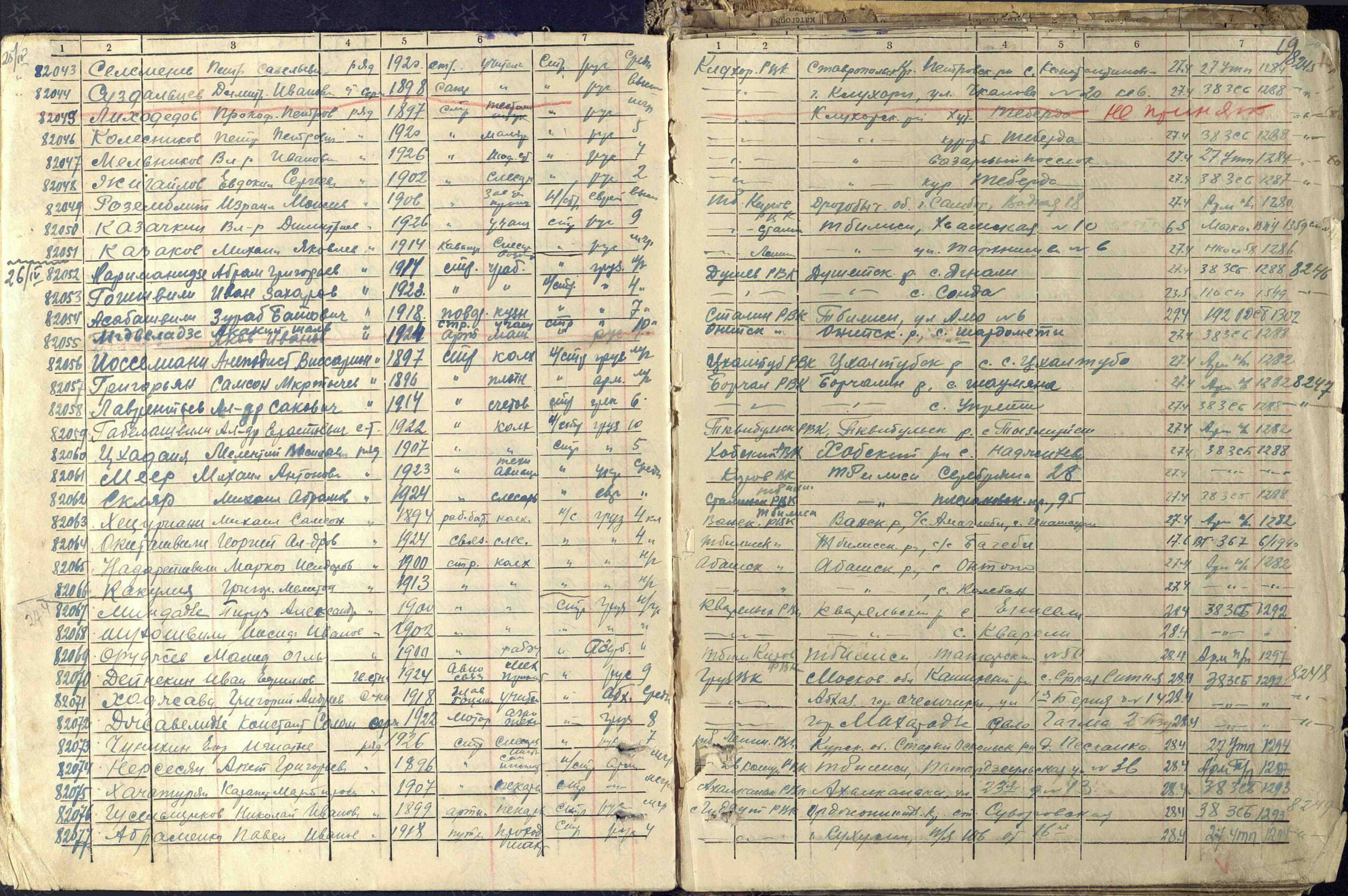 Наименование военкомата: Борчалинский РВК, Грузинская ССР, Борчалинский р-н