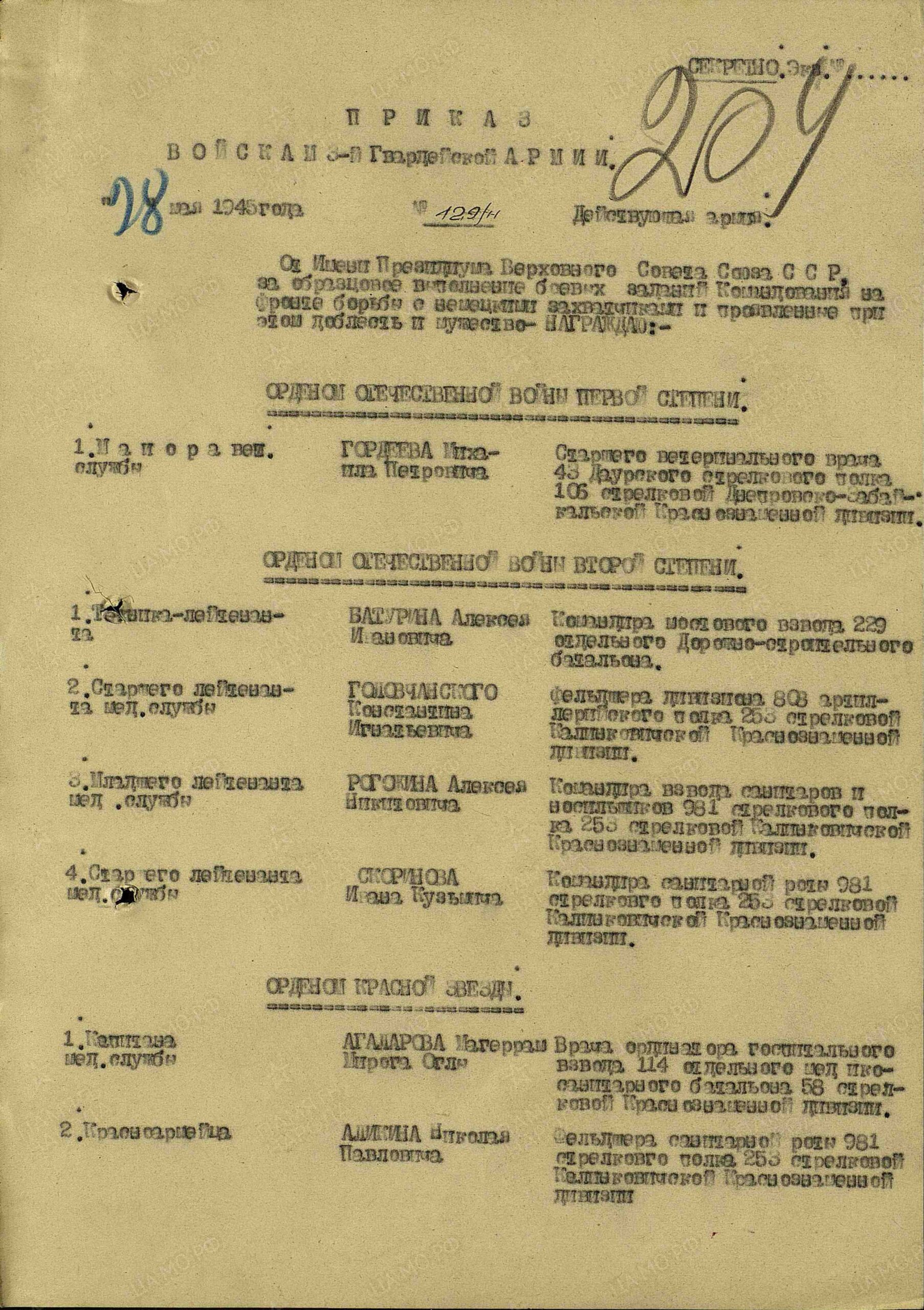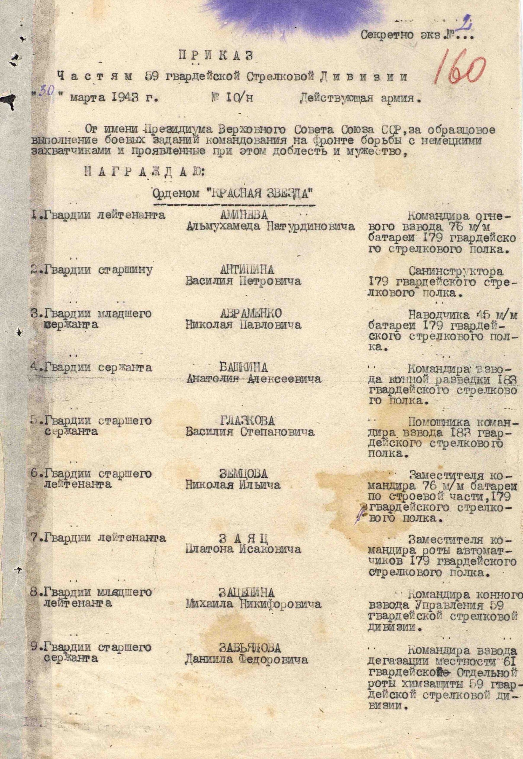 Воинская часть: 179 гв. сп , 701 стрелковый полк