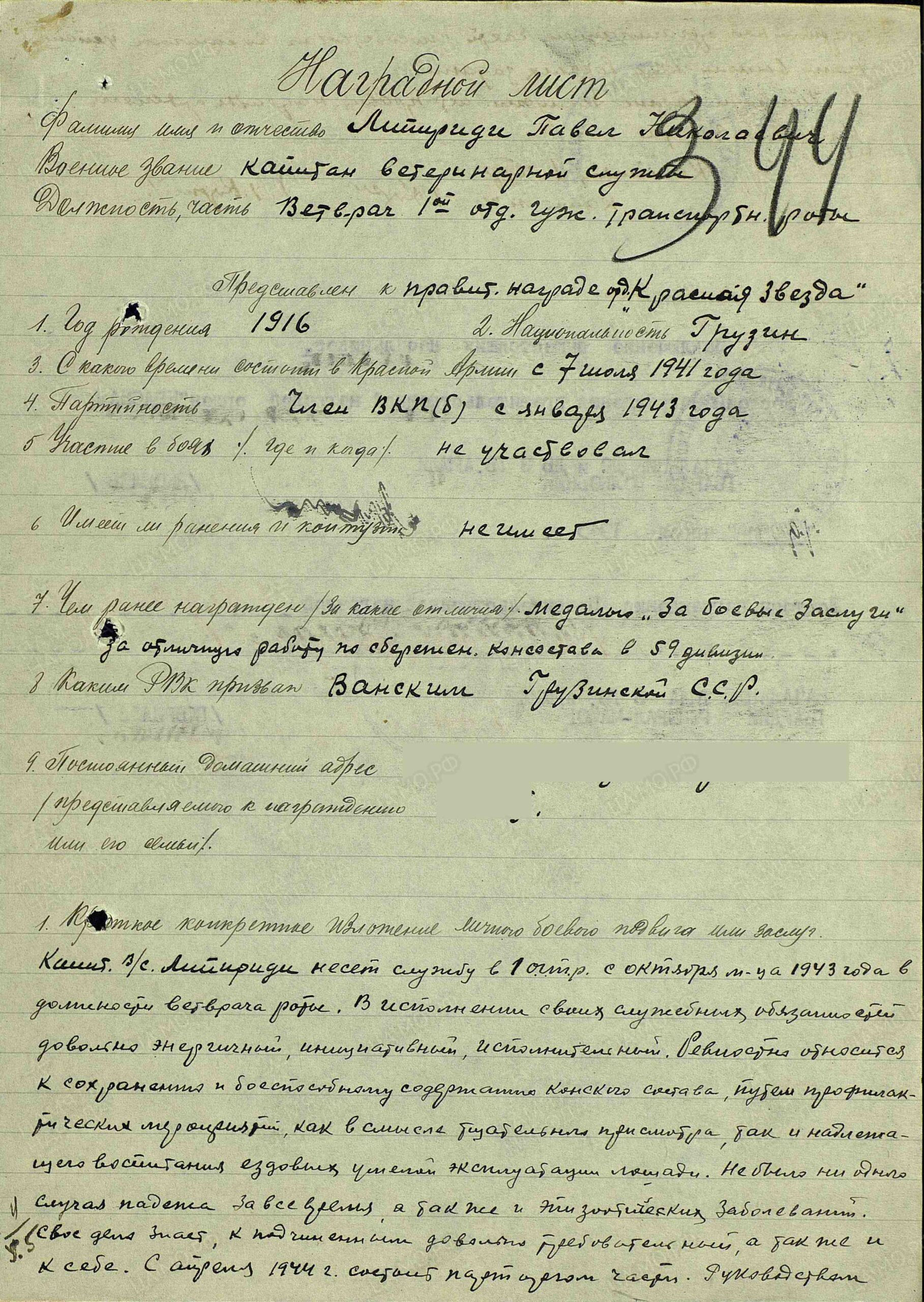 Место призыва: Ванский РВК, Грузинская ССР, Ванский р-н