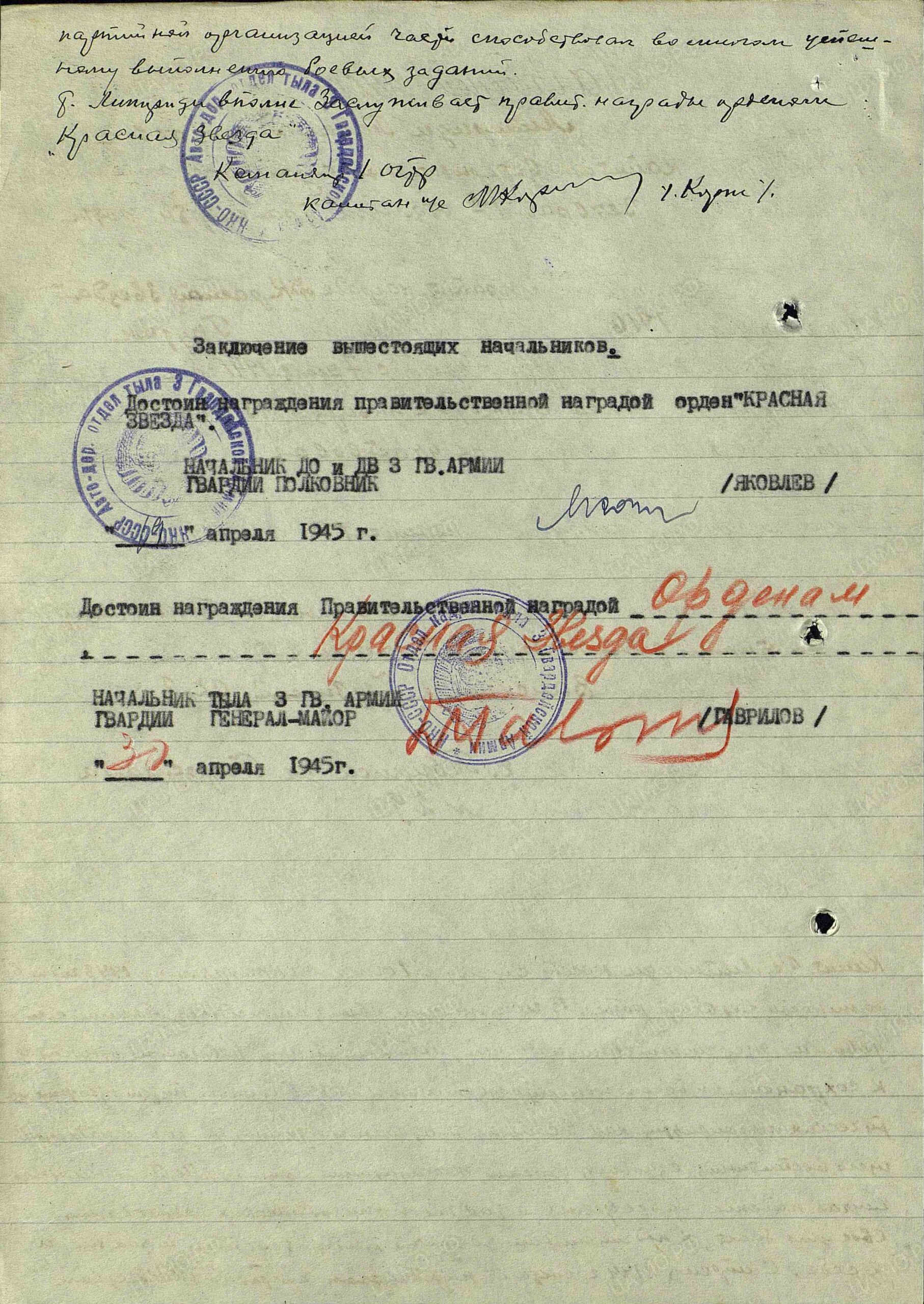 Воинское звание: Гвардии капитан