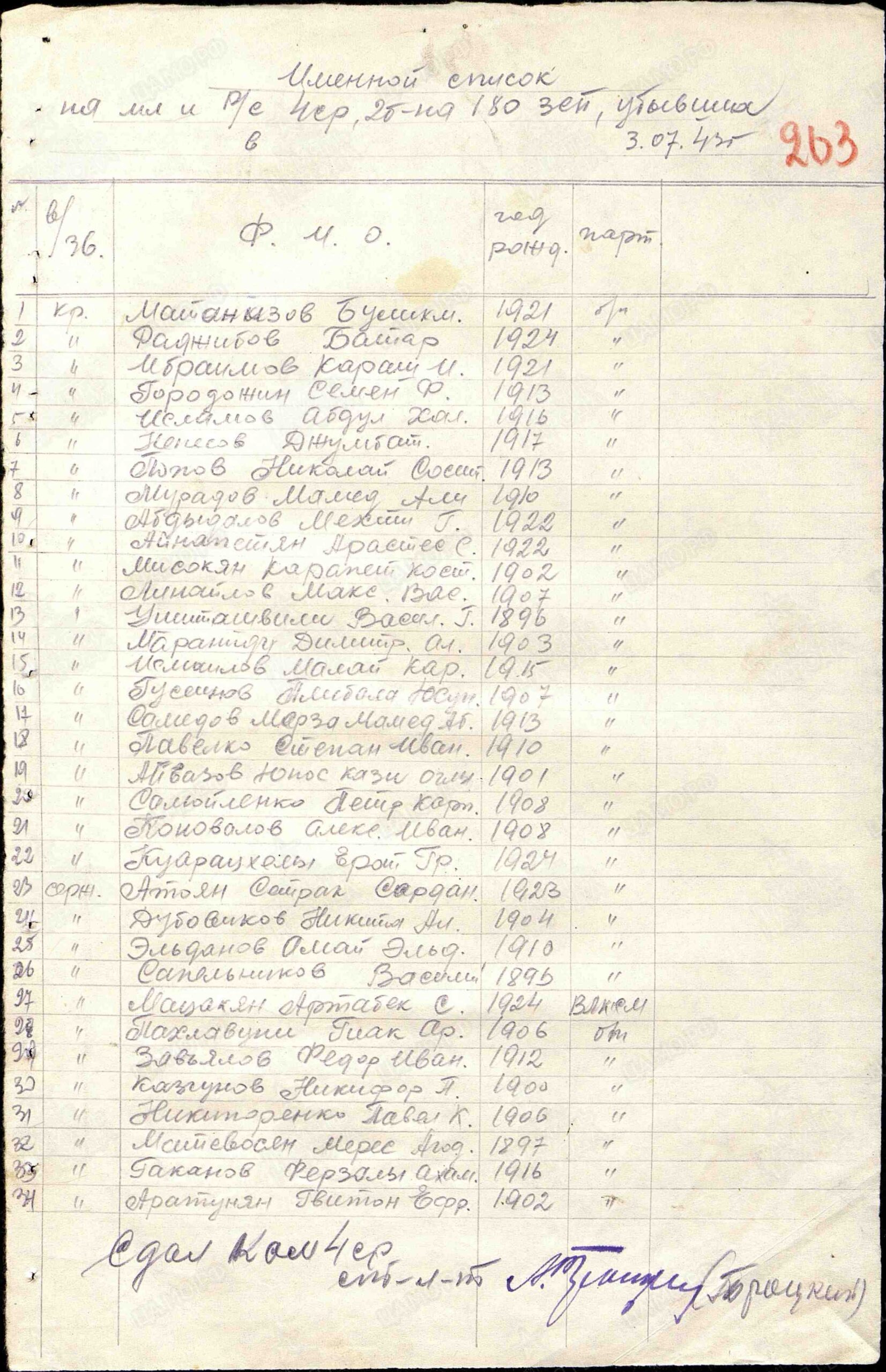 Выбытие из воинской части: 03.07.1943