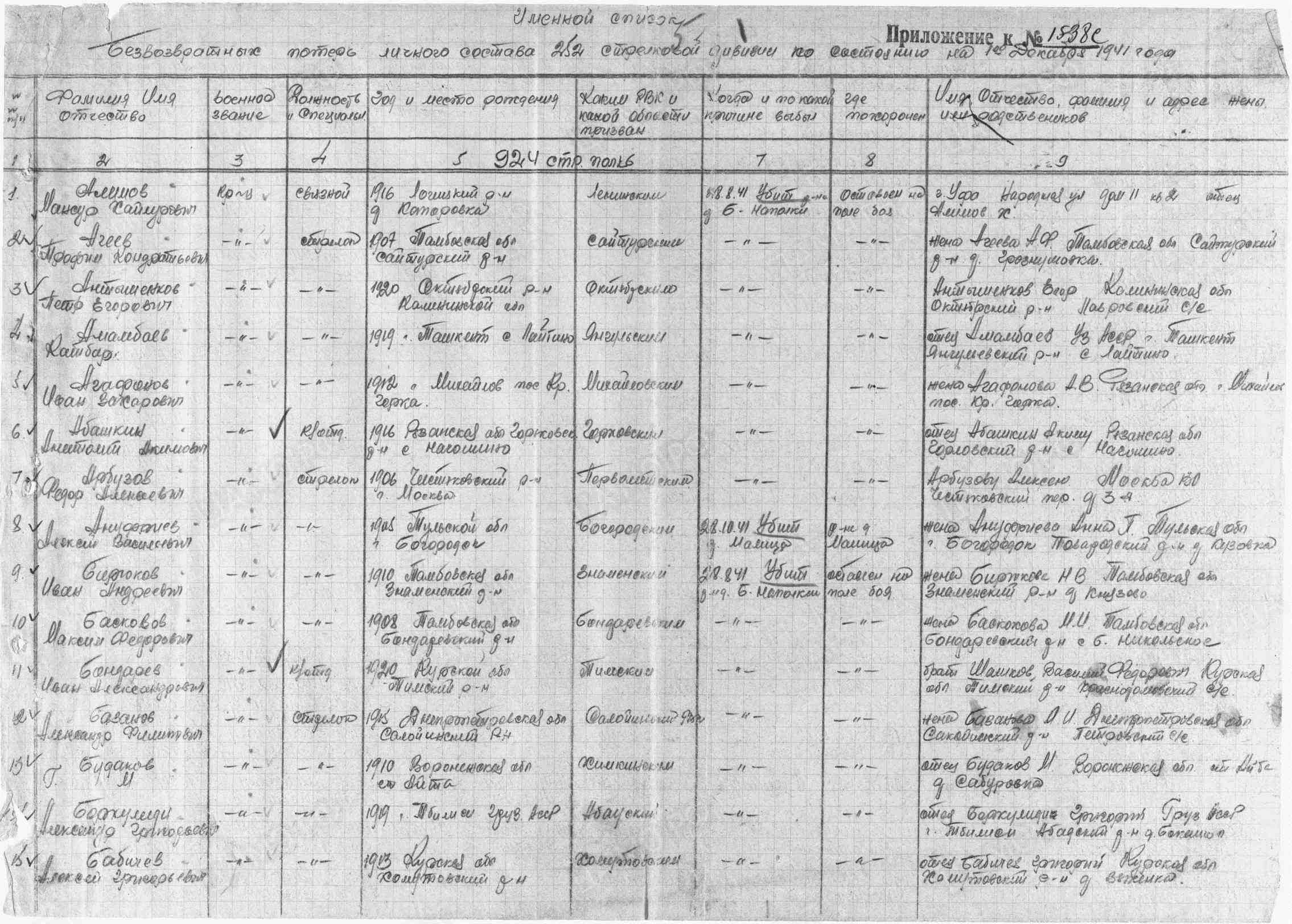 Воинская часть: 252 сд