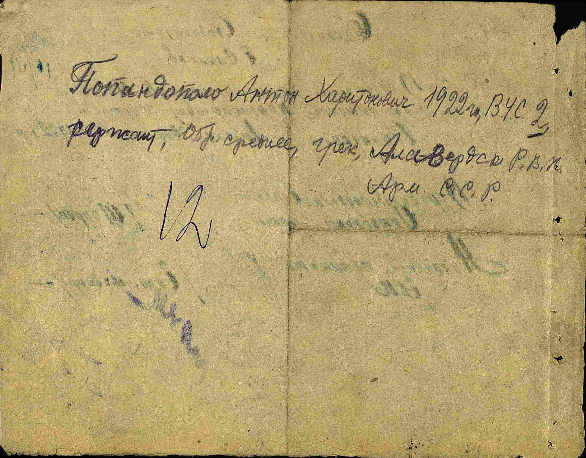 Место призыва: Алавердский РВК, Армянская ССР, Алавердский р-н