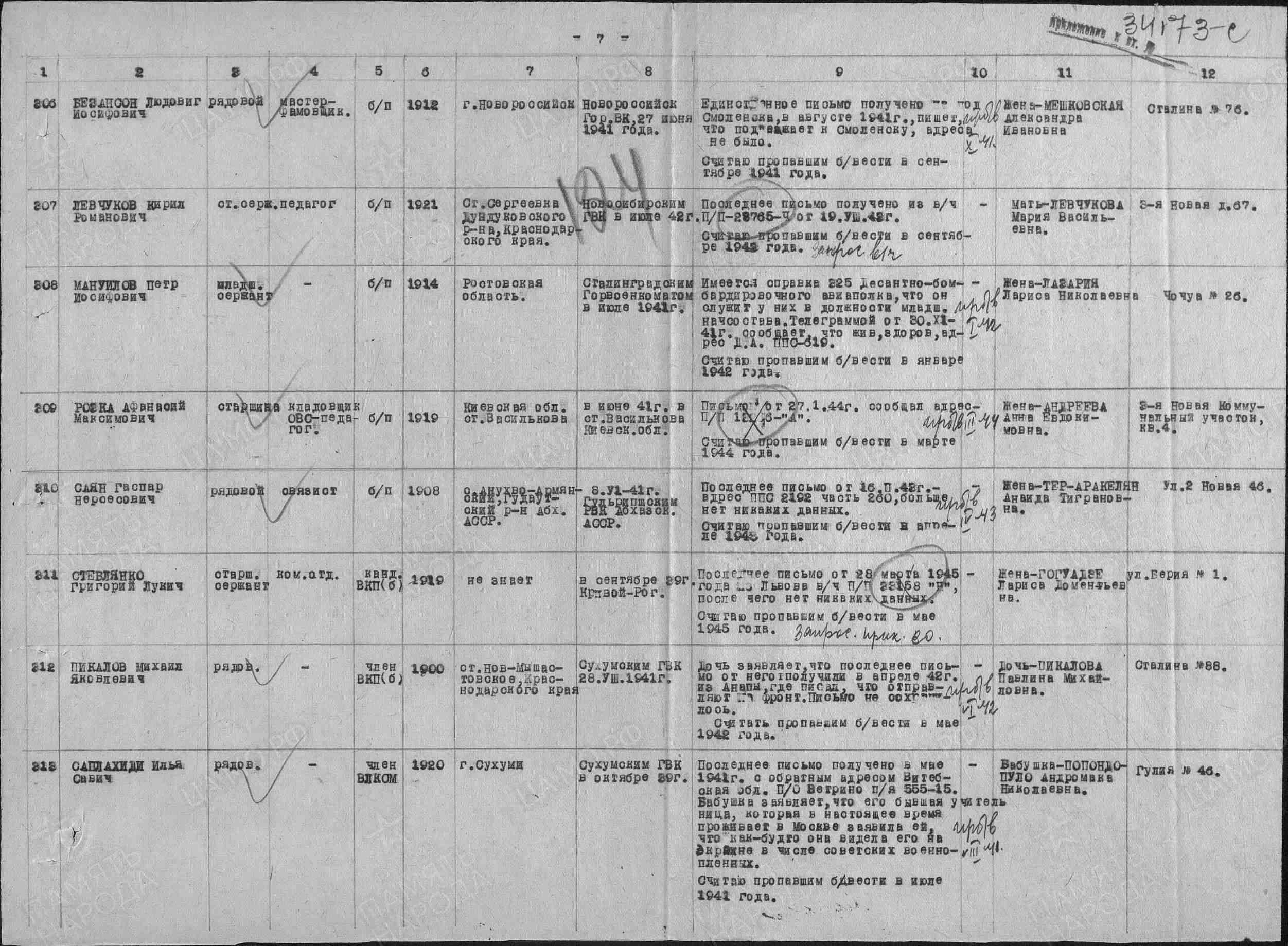 Наименование военкомата: Сухумский ГВК, Грузинская ССР, Абхазская АССР, г. Сухуми