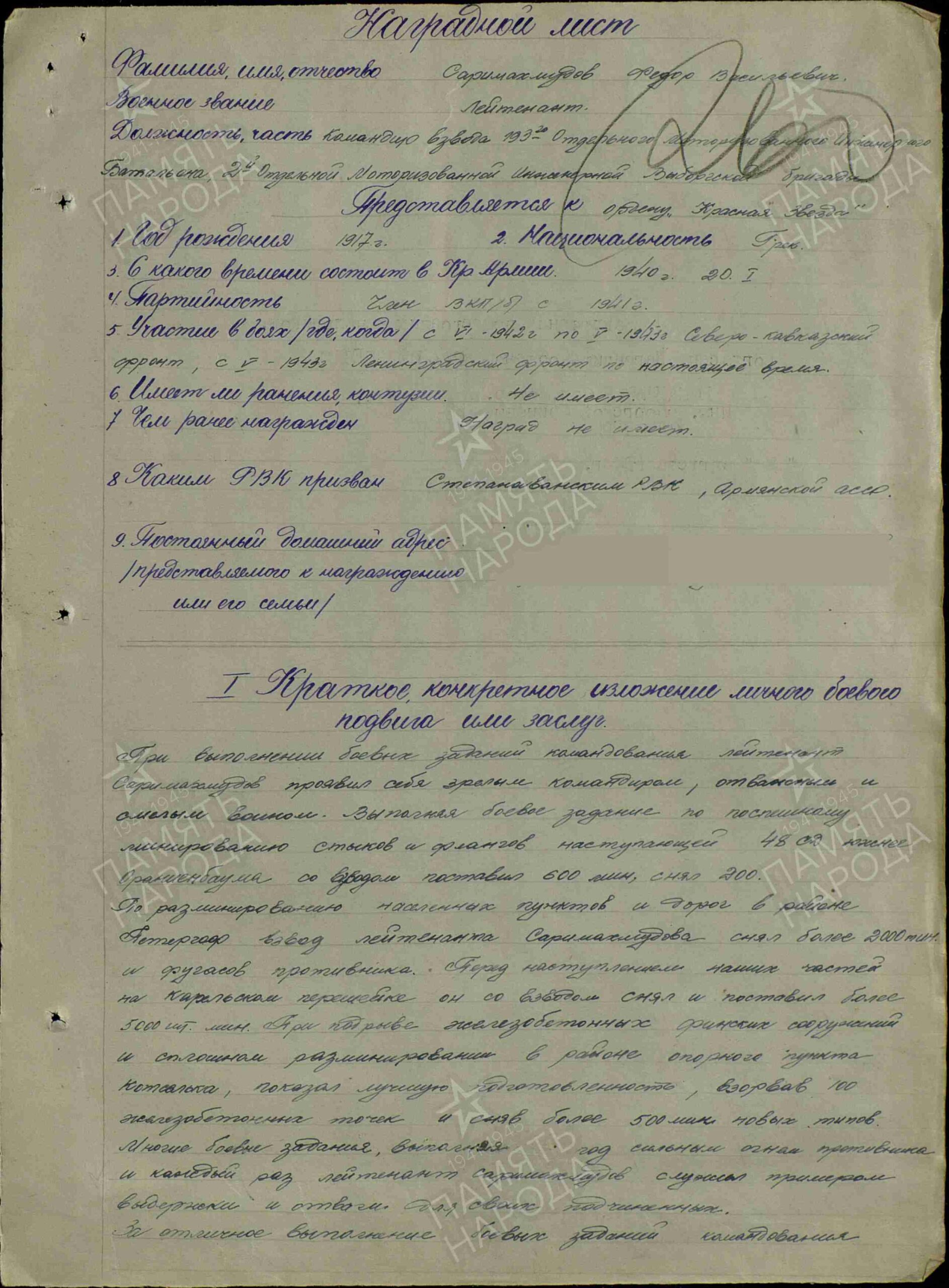 Дата призыва: 15.10.1943; 01.1940; 06.1942; 07.1942; 18.12.1943