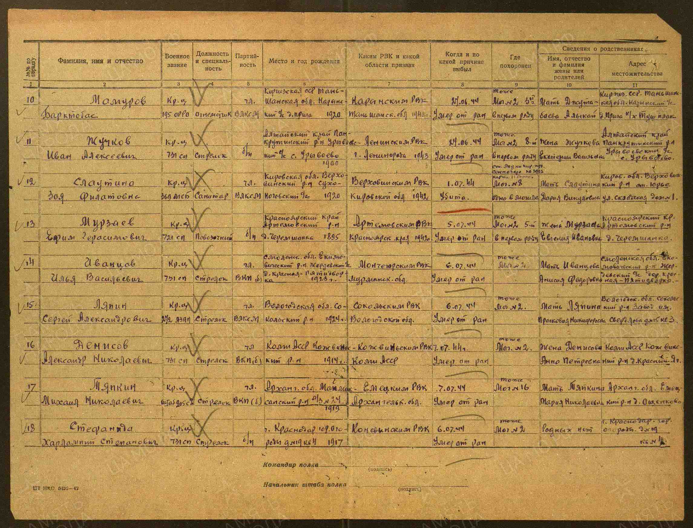 Причина выбытия: умер от ран