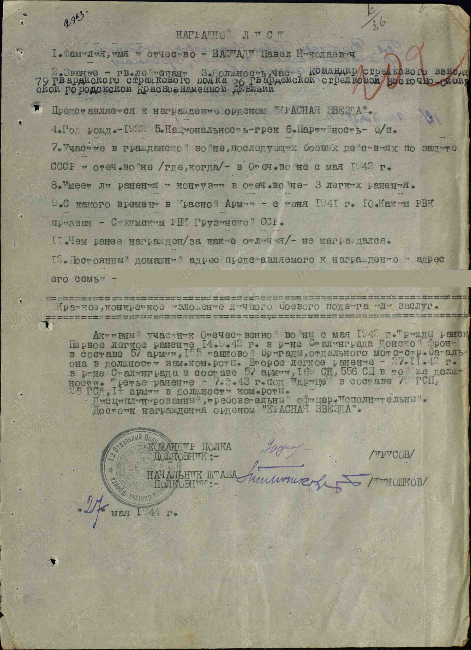 Добавьте информацию, после модерации она будет опубликована в анкете ветерана.